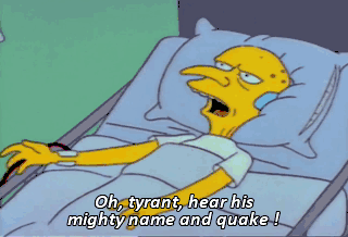 Oh, tyrant, hear his mighty name and quake ! Smithers, I'm back !
