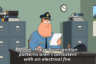 Mmm. These burn ignition patterns aren't consistent with an electrical fire. (CELL PHONE CHIMES) Would love to. (CELL PHONE CHIMES) Probably about 7:00 or 7:30.