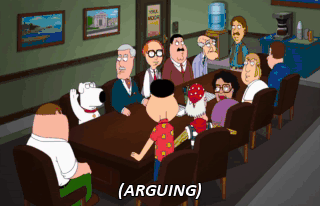 (ARGUING) What the hell? All right, looks like we's gonna be here a while. Who wants pizza for dinner? And who wants Purina Moist and Meaty Dog Chow? (ARGUING)