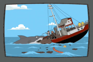 Stop eating our boat, Jaws! I'm gonna eat your boat, and then I'm gonna eat you guys!