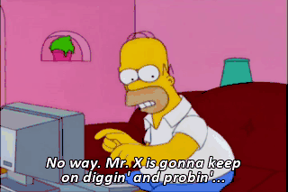 No way. Mr. X is gonna keep on diggin' and probin'... until every person in this town is in jail. Aaah! A coconut bagel? Like poison it tastes! All right, I'll tell you a secret.