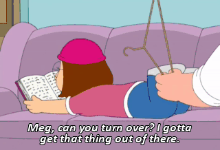 Meg, can you turn over? I gotta get that thing out of there. You're sitting on my shirt. I gotta put it on this hanger.