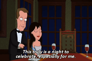 This truly is a night to celebrate, especially for me. Hey, what's going on here, Woods? The invitation said this was a dinner in my honor. That's what mine said, too. Yeah, me, too!