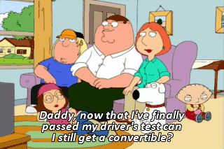 Daddy, now that I've finally passed my driver's test can I still get a convertible?