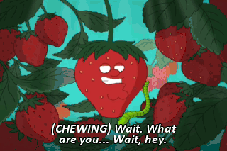 (CHEWING) Wait. What are you... Wait, hey. (BLOWING) Hey, get out of here! Hey! (SCREAMING)
