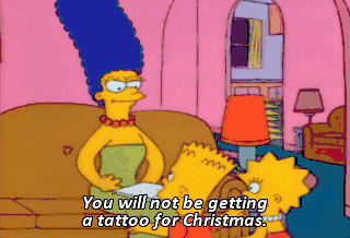 You will not be getting a tattoo for Christmas. Yeah. If you want one, you'll have to pay for it out of your own allowance. All right ! Homer !