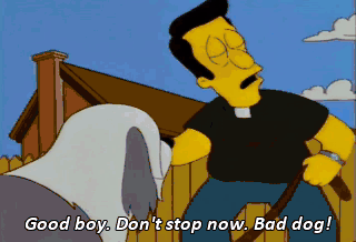 Good boy. Don't stop now. Bad dog! I condemn you to hell. Better get the old snow shovel back from Homer, huh?
