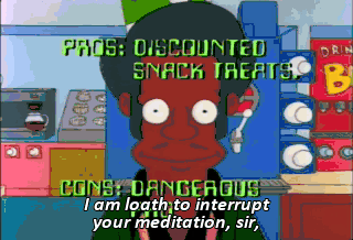 I am loath to interrupt your meditation, sir, but the time has come for money to change hands. Oh, sorry.