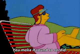 You make it sound so sordid. - Look, don't we have a good time together? - Yes, but-- Don't you have everything you ever wanted here? Money, security, a big, hot, flat rock for jub jub?