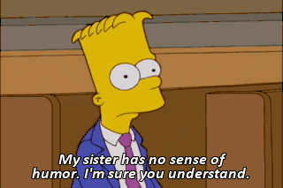 My sister has no sense of humor. I'm sure you understand.