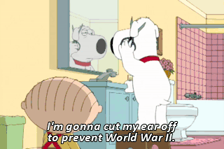 I'm gonna cut my ear off to prevent World War II. (SCREAMS) Oh, God! Oh, God! (GRUNTS)