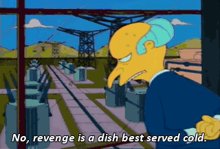 No, revenge is a dish best served cold. I'll bide my time until-- Oh, what the hell. I'll just crush him like an ant. "senile," eh ? "Buck-toothed," am I ?