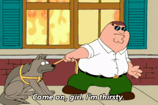 Come on, girl. I'm thirsty. All right, you don't want to come in? Fine. I'll just tie you to this parking meter.