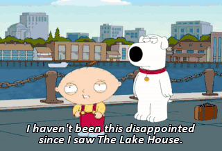 I haven't been this disappointed since I saw The Lake House. See, the mailbox is like a time portal. Everything Keanu Reeves puts in there, Sandra Bullock gets two years later.