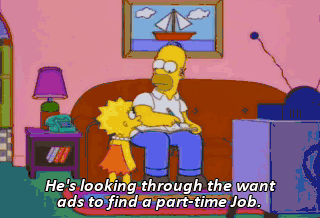 He's looking through the want ads to find a part-time Job.