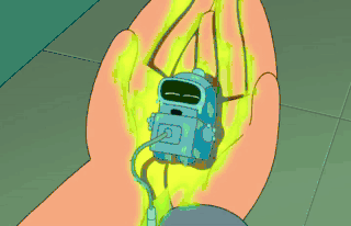 (ALL GASPING) Oh, no, no, no. No way am I that kid's dad! Wipe my tiny metal ass! Aw, crap.
