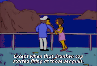 Except when that drunken cop started firing at those seagulls.