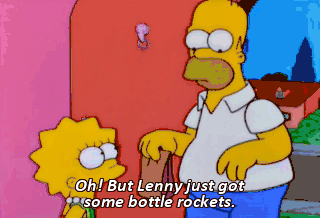 Oh! But Lenny just got some bottle rockets. You stay away from Lenny. And where's your sweater, Bart? It unraveled on a nail. That's not true. He left it on the bus. You're dead, squealer! Ah, Lisa! Help!