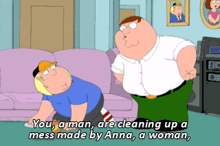 You, a man, are cleaning up a mess made by Anna, a woman,