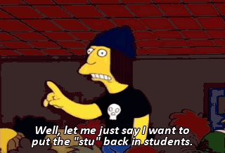 Well, let me just say I want to put the "stu" back in students. It's just a damn popularity contest with you kids. Now look what you've done, you little freaks!