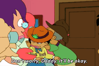 Don't worry, Daddy. It'll be okay. Oh, really? Who gonna save us? One eye? Lobster mooch? Drunken garbage can? This sounds like a job for-- Lt. Kif Kroker. All right, then.