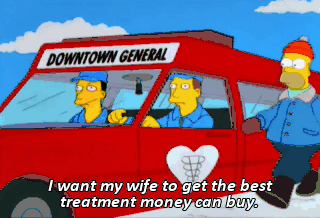 I want my wife to get the best treatment money can buy. Whoa, whoa, whoa. Don't go nuts.