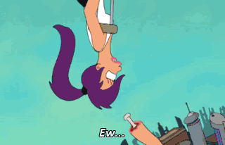 Ew... Okay. Hurray! (SCREAMS) (BOTH SCREAMING) Good thing Scruffy rescued Leela. Don't thank me, thank the ladder.