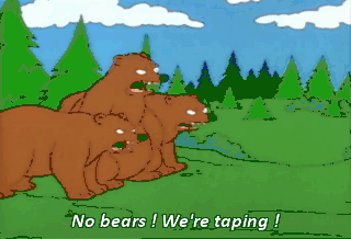 No bears ! We're taping ! All bears off the set. Okay. Now let's get back to your, uh, husband. How would you describe your marital relations ? Brutish ?