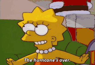 The hurricane's over. He fell for it! Way to go, Marge!