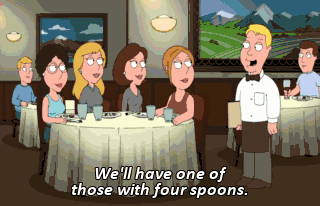 We'll have one of those with four spoons. More like four of those with one spoon for me! (LAUGHING)