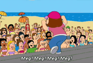 Meg! Meg! Meg! Meg! Oh, my God! It's a chick! All right, everybody! This party's over! Hey, Why do you cops always have to kill our buzz? He used a teenage colloquialism. Get the tear gas.