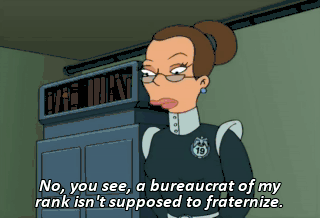 No, you see, a bureaucrat of my rank isn't supposed to fraternize. That's what makes it so juicy. It's a forbidden fruit angle everybody loves.
