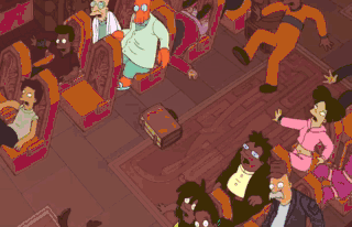 (ALL SCREAMING) (ALL JEERING) Don't come back!