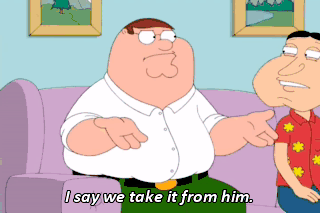 I say we take it from him. Guys, we are gonna plan a robbery. (DOORBELL RINGS) (DRUNKENLY) Hey, hey, that's the guy. That's the guy whose chin looks like a... Balls.