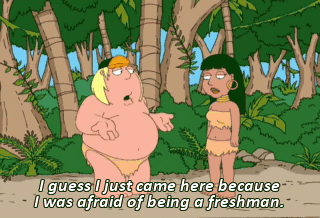 I guess I just came here because I was afraid of being a freshman. Freshman? Freshman! I guess you can't run away from your problems anywhere.