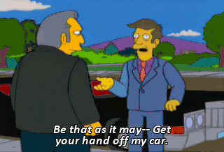 Be that as it may-- Get your hand off my car.