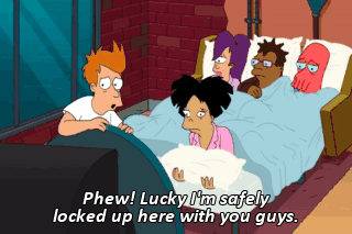 Phew! Lucky I'm safely locked up here with you guys. There he is! Get him!