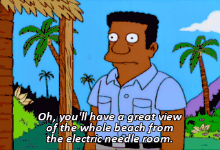 Oh, you'll have a great view of the whole beach from the electric needle room. Really? The whole beach?