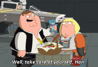 Well, take care of yourself, Han. I guess that's what you're best at. Oh, look! A light saber cheese knife! Yuck!