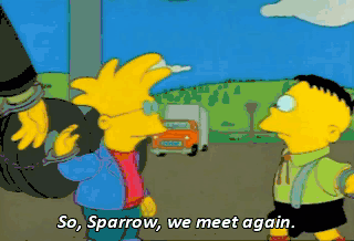 So, Sparrow, we meet again. Yes. Sometimes I think I am getting too old for this game. Okay, kids. Let's hurry it up. Good-bye, Simpsons. Thank you for your hospitality.