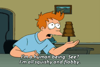 I'm a human being. See? I'm all squishy and flabby. Also, I complain a lot. Yes, you do. - You need to relax more. - Wow!