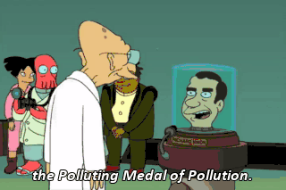 the Polluting Medal of Pollution. Thank you. I deserve this. Hey, Professor! Now that the Earth's orbit is further from the sun,
