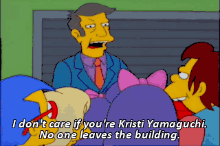 I don't care if you're Kristi Yamaguchi. No one leaves the building.