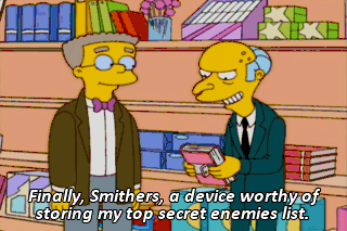 Finally, Smithers, a device worthy of storing my top secret enemies list. - I'm ready, sir. - Number one, the Kingston Trio. Number two-