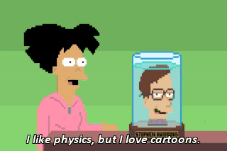 I like physics, but I love cartoons. This is the greatest moment in scientific history. At last, there are no more questions left to answer. (ALL CHEERING)