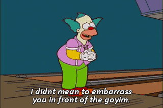 I didnt mean to embarrass you in front of the goyim. As l was saying, if we keep our hearts pure, we Can- Doctor Hibbert! Must you play the claw machine? I'll be right there. I’ve almost got me a kitty cat.
