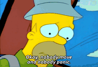 Okay, nobody move and nobody panic. When I give the word, everyone, ever so slowly, open your door and slide out. On the count of three. One--