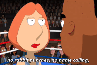 no rabbit punches, no name calling, no making trouble for unconventional couples who want to adopt babies, 'cause you know what?