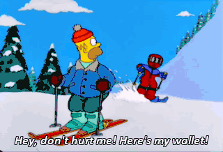 Hey, don't hurt me! Here's my wallet! Hi-diddly-ho, schuss-in-boots! Flanders? That suit's a little revealing, isn't it? Well, it allows for maximum mobility. Feels like I'm wearing nothin' at all. Quit it!
