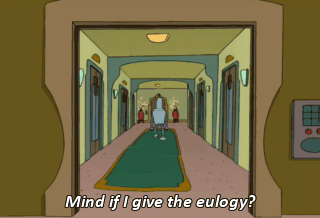 Mind if I give the eulogy? Calculon! You're alive! Yay! Calculon's back!